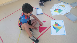 Aquest curs ja hem començat a anar al racó matemàtic. Allà fem racons de numeració, juguem amb el tangram, fem sumes....És divertit aprendre en espais fora de l'aula!!!! Els nens que es queden a l'aula també fan racons de descomposició, numeració.....